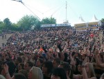 Absoluter Knaller des Tages waren die Darkrocker UNZUCHT, bei denen sich das Amphittheater zunehmend mit Menschen füllte, die „ihre“ Band auf der Bühne frenetisch am abfeiern waren. Sänger Der Schulz zeigte sich davon gleichermaßen verblüfft und begeistert. Selten einen Mann so strahlend (hat tolle Zähne!) auf der Bühne erlebt und das bei oft so düsteren Songs ;)!