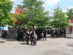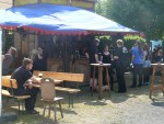 Auh das vielfältige Marktgeschehen lud die Besucher immer wieder zum Bummeln ein. Pfiffige Händler dämmten das ewige Dilemma mit dem sehr staubigen Boden (hust) prima mit Wasser aus der Gießkanne ein! Vor allem im Außenbereich gab es leckere (mittelalterliche) Speisen und für den besonderen Gaumen bot ein Spirituosen-Stand u.a. namhafte Whiskey-Sorten an.